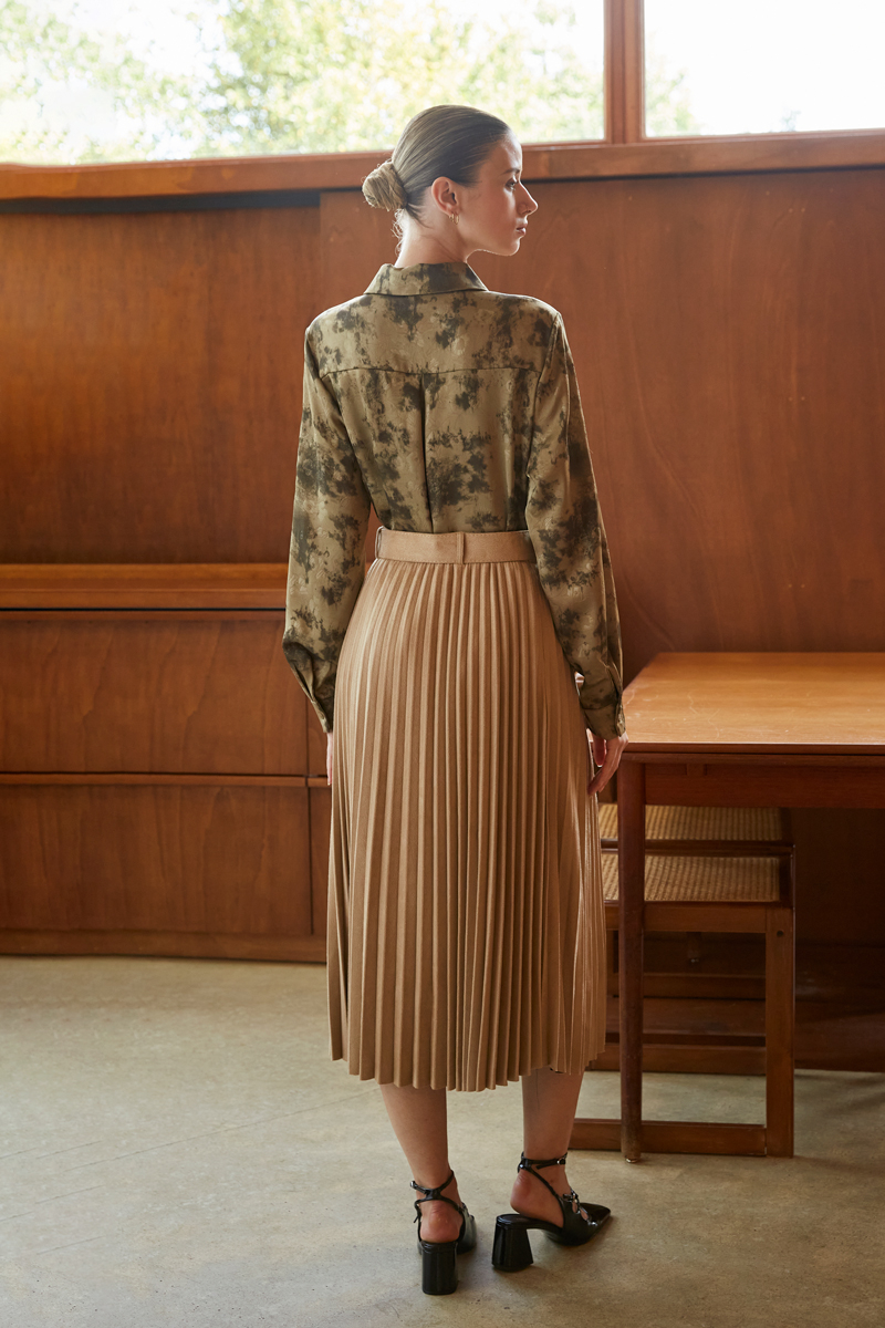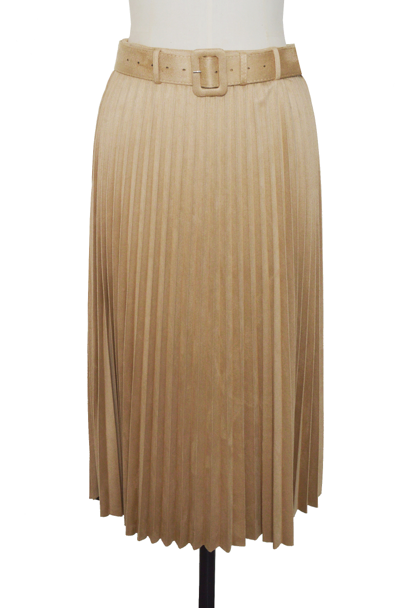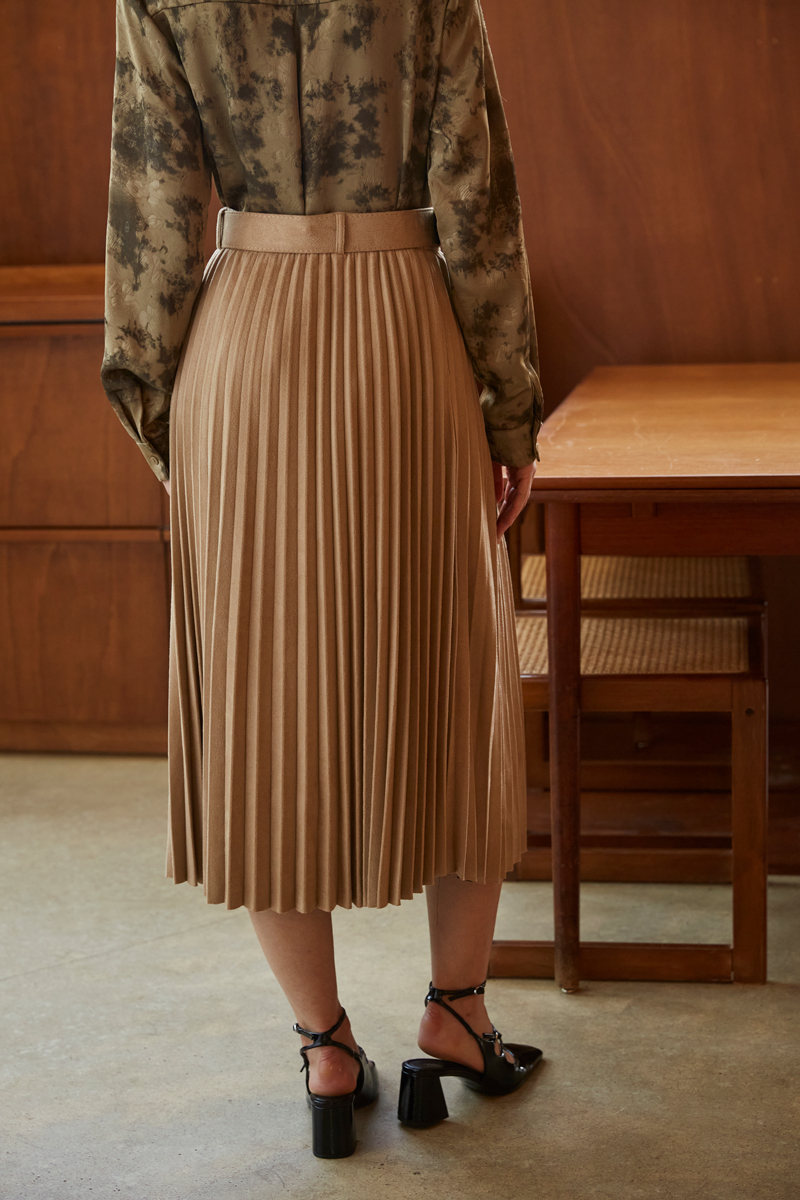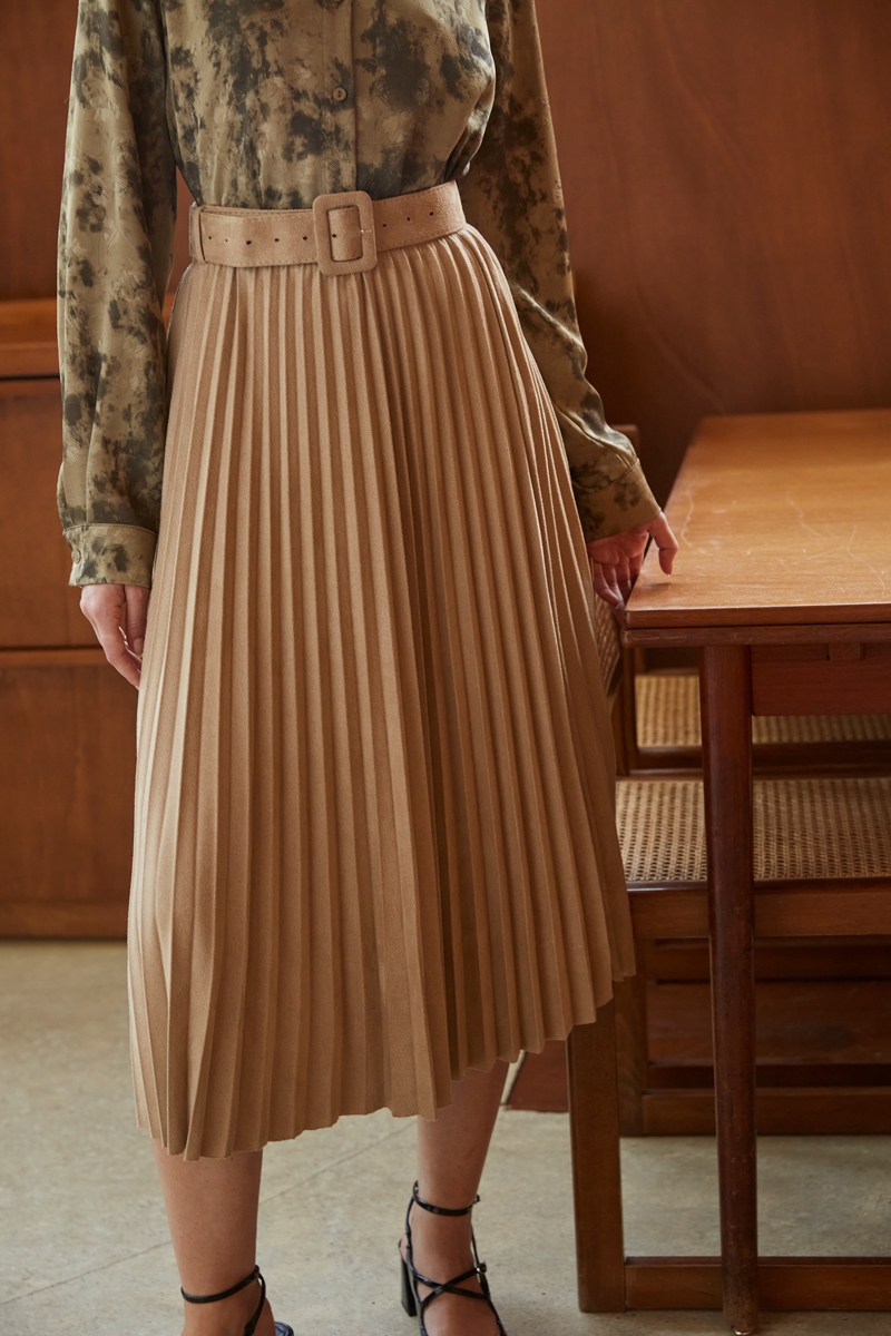 Jupe midi plissée avec ceinture ton sur ton à boucle carrée