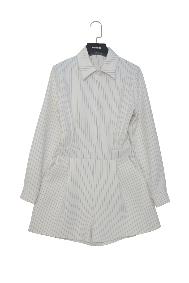 Cette combinaison à manches longues séduit par sa coupe structurée et son imprimé à fines rayures. Parfaite pour un look de bureau moderne ou une sortie urbaine, elle allie confort et élégance grâce à sa taille marquée et son tissu fluide.