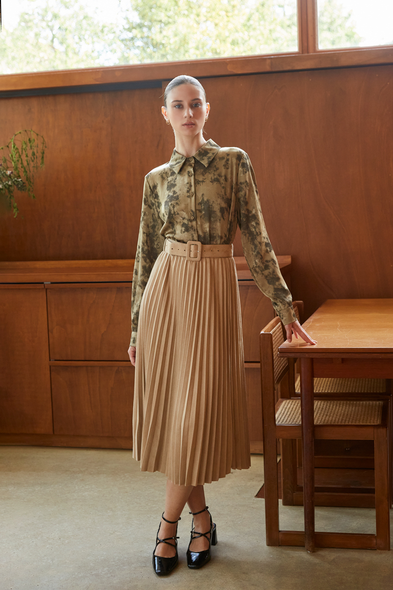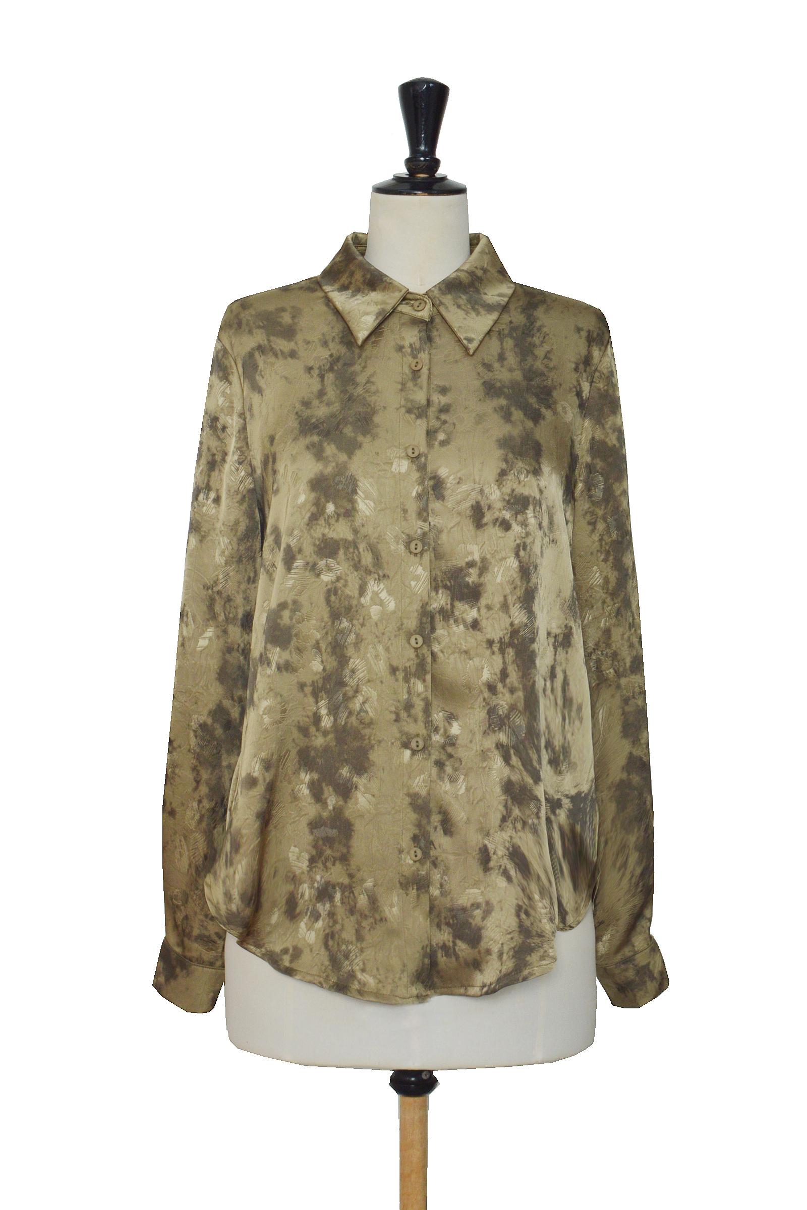 Cette chemise fluide kaki se distingue par son imprimé tie & dye unique et sa texture légèrement satinée. Conçue en polyester léger, elle offre un tombé élégant et un confort optimal. Parfaite pour une allure décontractée et stylée.