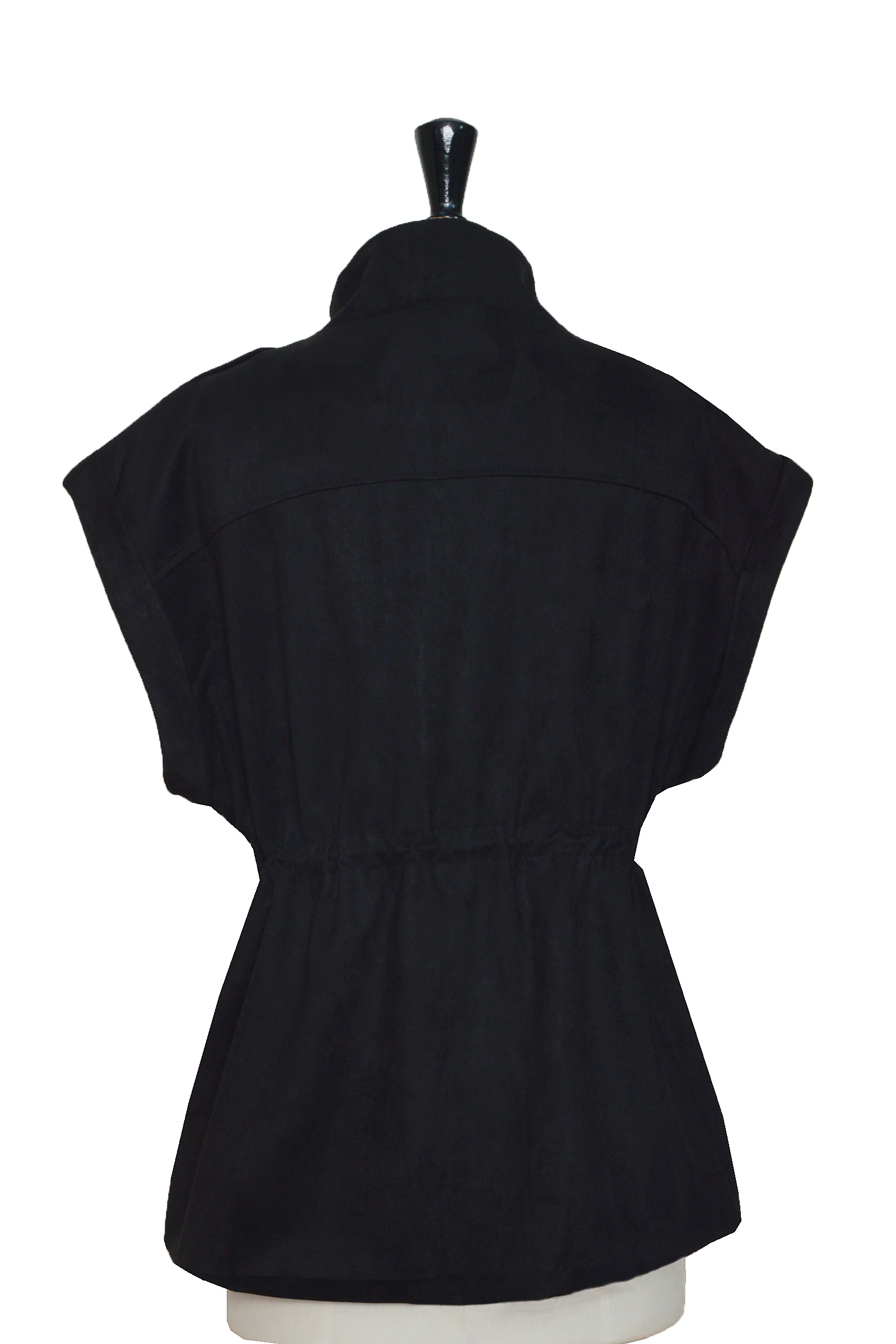 Ce gilet saharienne sans manches en suédine est une pièce idéale pour structurer vos tenues de mi-saison. Sa texture douce effet daim et sa coupe cintrée à la taille lui donnent un look à la fois pratique et élégant.