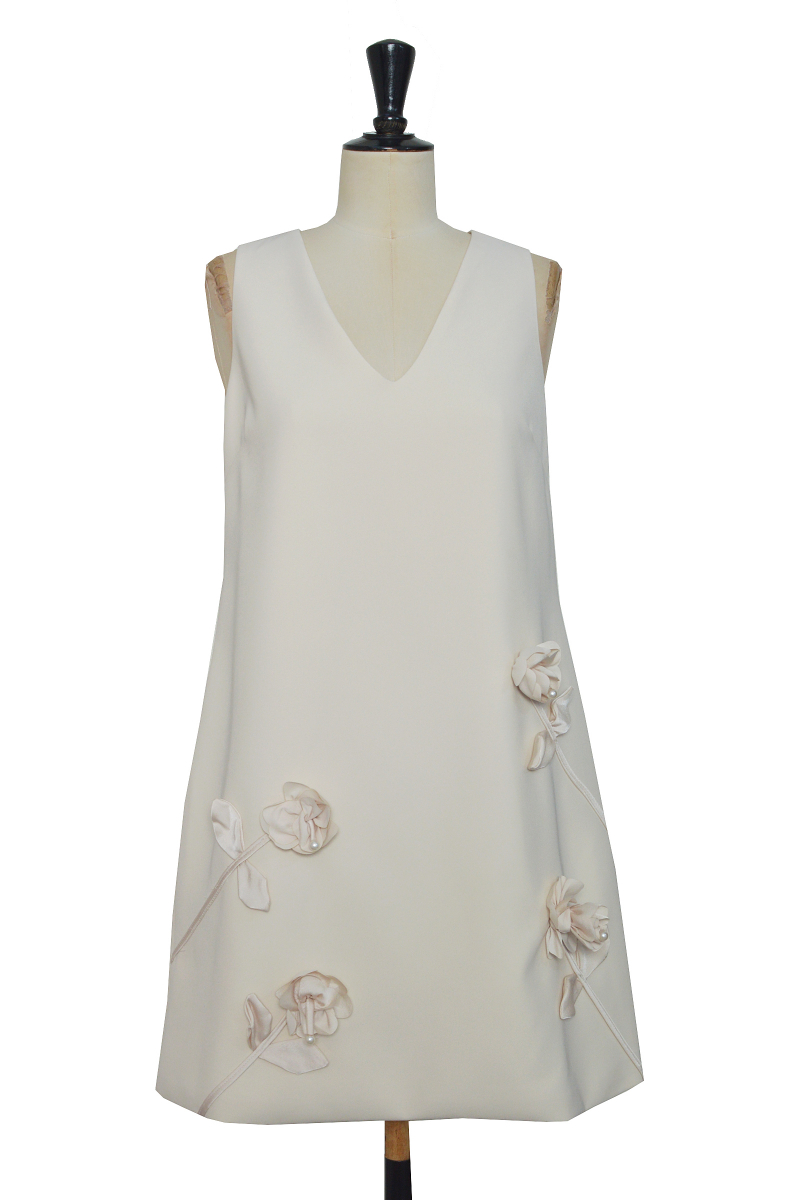 Cette robe sans manches se distingue par sa coupe trapèze épurée et ses délicates fleurs cousues en relief, apportant une touche de romantisme et de raffinement. Facile à porter, elle est idéale pour des occasions spéciales ou une tenue chic au quotidien.