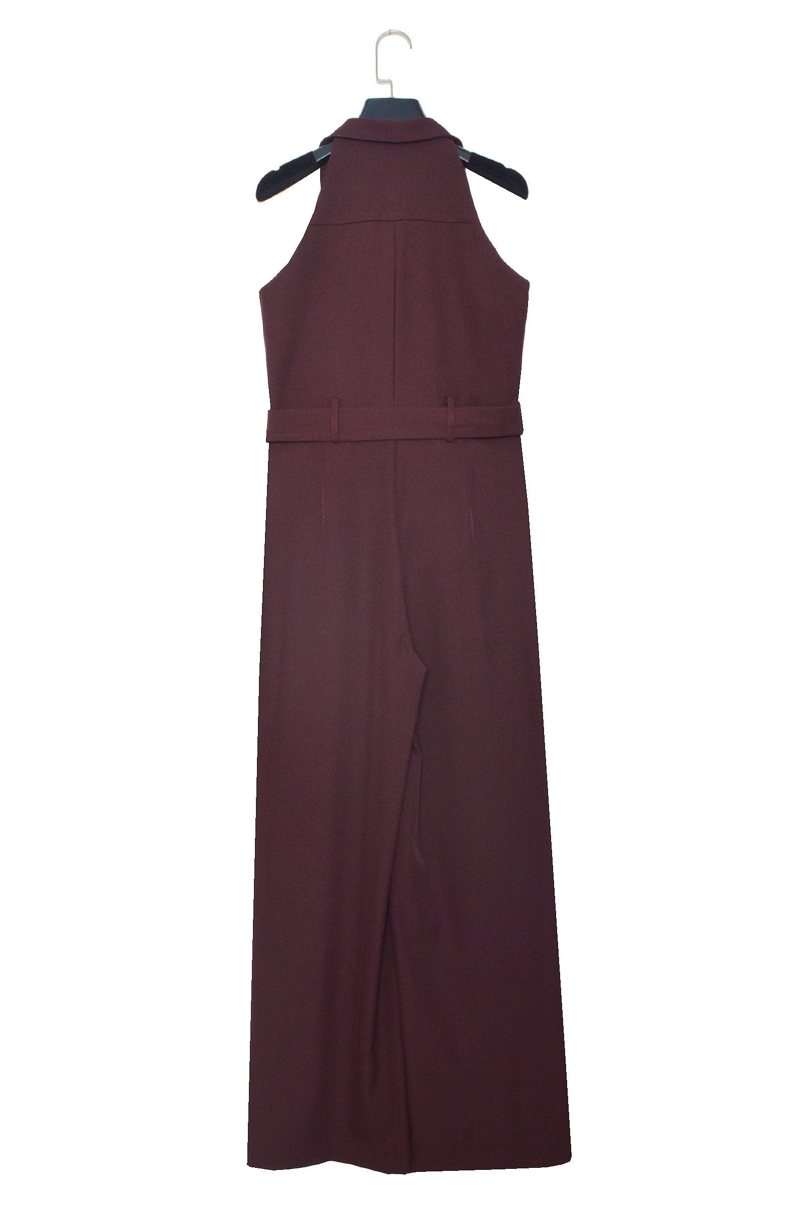 Cette combinaison élégante sans manches est dotée d’un col tailleur structuré et d’une double rangée de boutons pour un look affirmé. Sa ceinture ton sur ton permet d’ajuster la taille à votre convenance. Une pièce fluide et chic, parfaite pour des occasions habillées ou un style sophistiqué au quotidien.