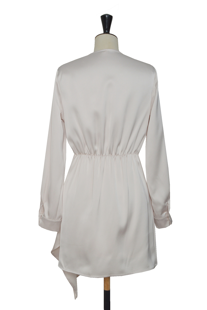 Cette robe élégante présente une coupe portefeuille flatteuse et une finition satinée qui lui confère une allure chic. Elle est agrémentée d’une fleur décorative ton sur ton placée sur le côté de la taille. La taille élastiquée au dos assure un confort optimal, tandis que le pan asymétrique apporte une touche d’originalité. Une pièce féminine et sophistiquée, idéale pour une occasion spéciale ou une tenue habillée.