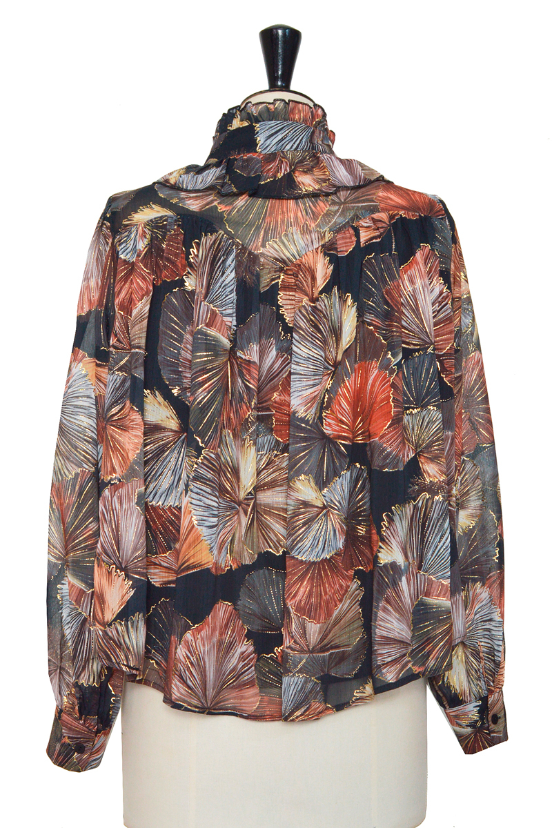 Cette blouse fluide séduit par son imprimé végétal vibrant et ses détails féminins. Le col lavallière à nouer et le col légèrement froncé apportent une touche sophistiquée, tandis que la coupe ample assure un tombé élégant et confortable. Les poignets boutonnés viennent structurer l’ensemble. Une pièce idéale pour dynamiser vos tenues du quotidien ou pour un look habillé tout en légèreté.