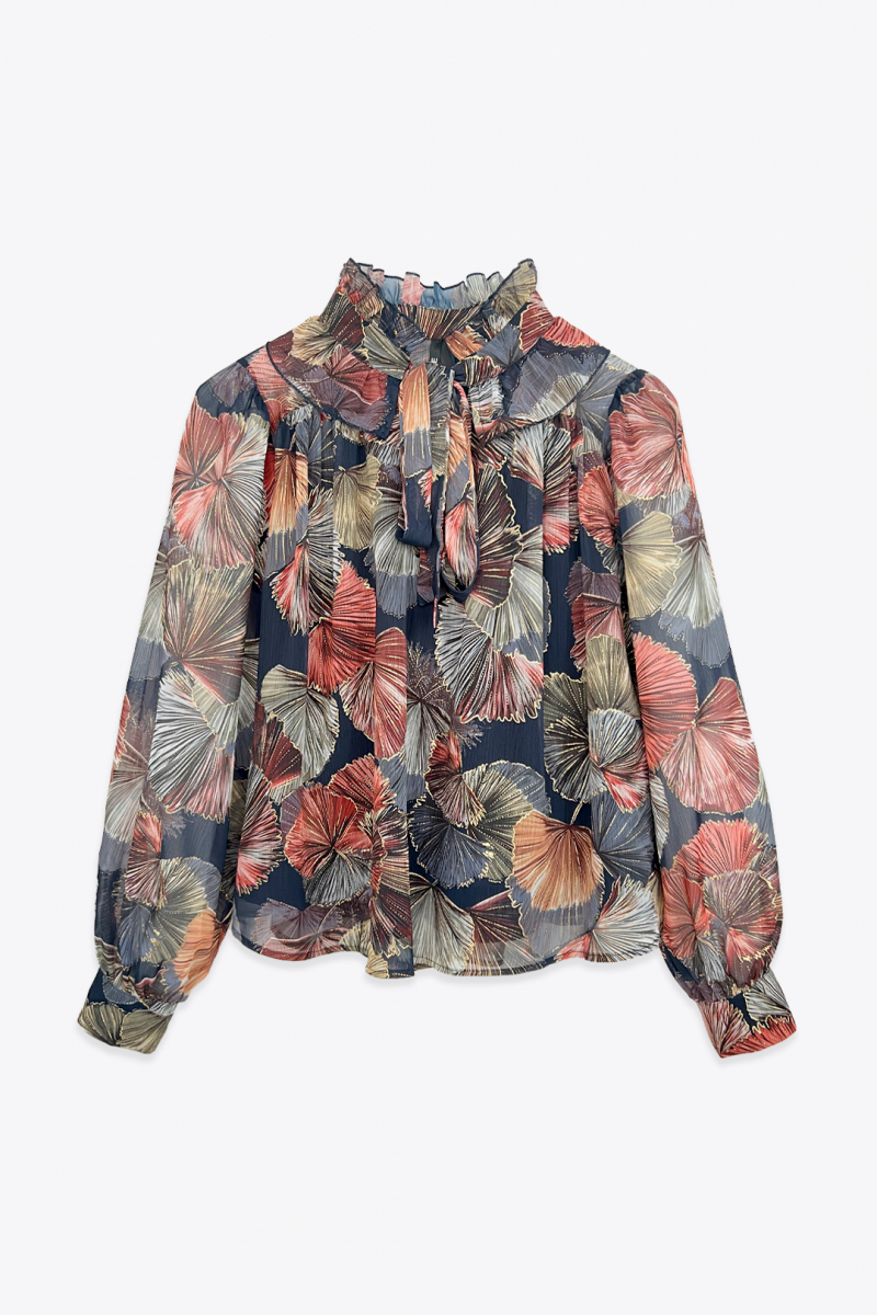 Cette blouse fluide séduit par son imprimé végétal vibrant et ses détails féminins. Le col lavallière à nouer et le col légèrement froncé apportent une touche sophistiquée, tandis que la coupe ample assure un tombé élégant et confortable. Les poignets boutonnés viennent structurer l’ensemble. Une pièce idéale pour dynamiser vos tenues du quotidien ou pour un look habillé tout en légèreté.