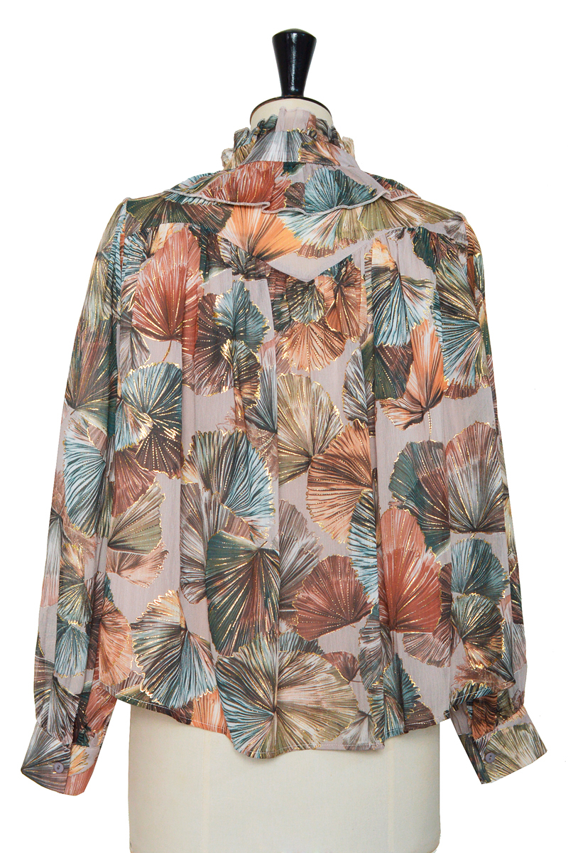 Cette blouse fluide séduit par son imprimé végétal vibrant et ses détails féminins. Le col lavallière à nouer et le col légèrement froncé apportent une touche sophistiquée, tandis que la coupe ample assure un tombé élégant et confortable. Les poignets boutonnés viennent structurer l’ensemble. Une pièce idéale pour dynamiser vos tenues du quotidien ou pour un look habillé tout en légèreté.