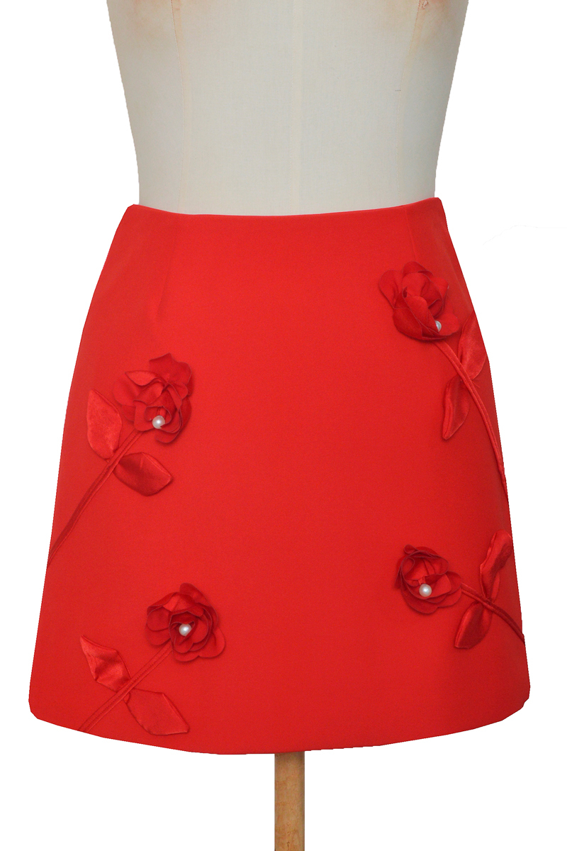 Jupe courte ornée de fleurs en relief et perles décoratives