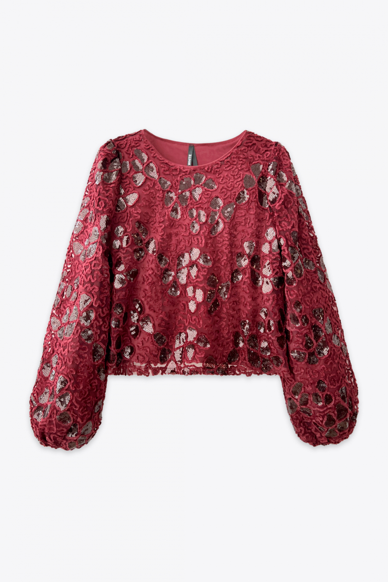 Top brodé à sequins avec manches longues bouffantes élégantes