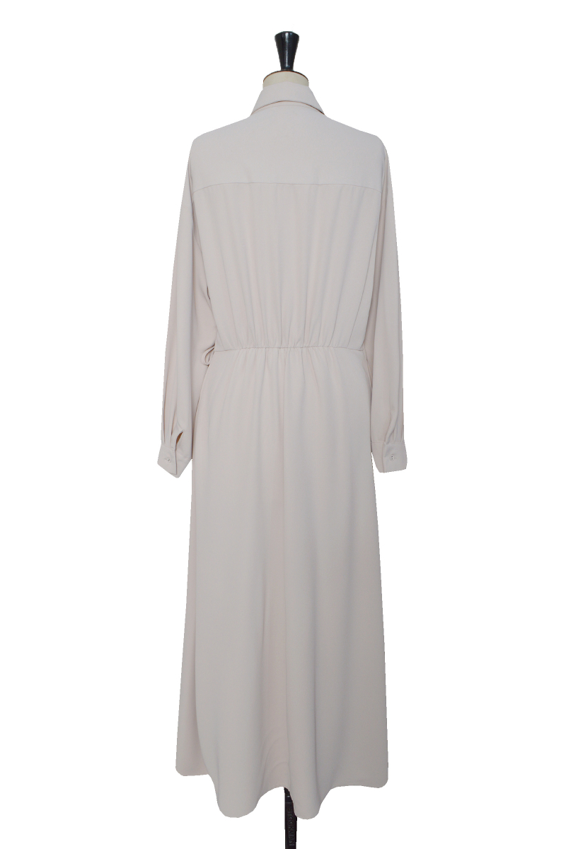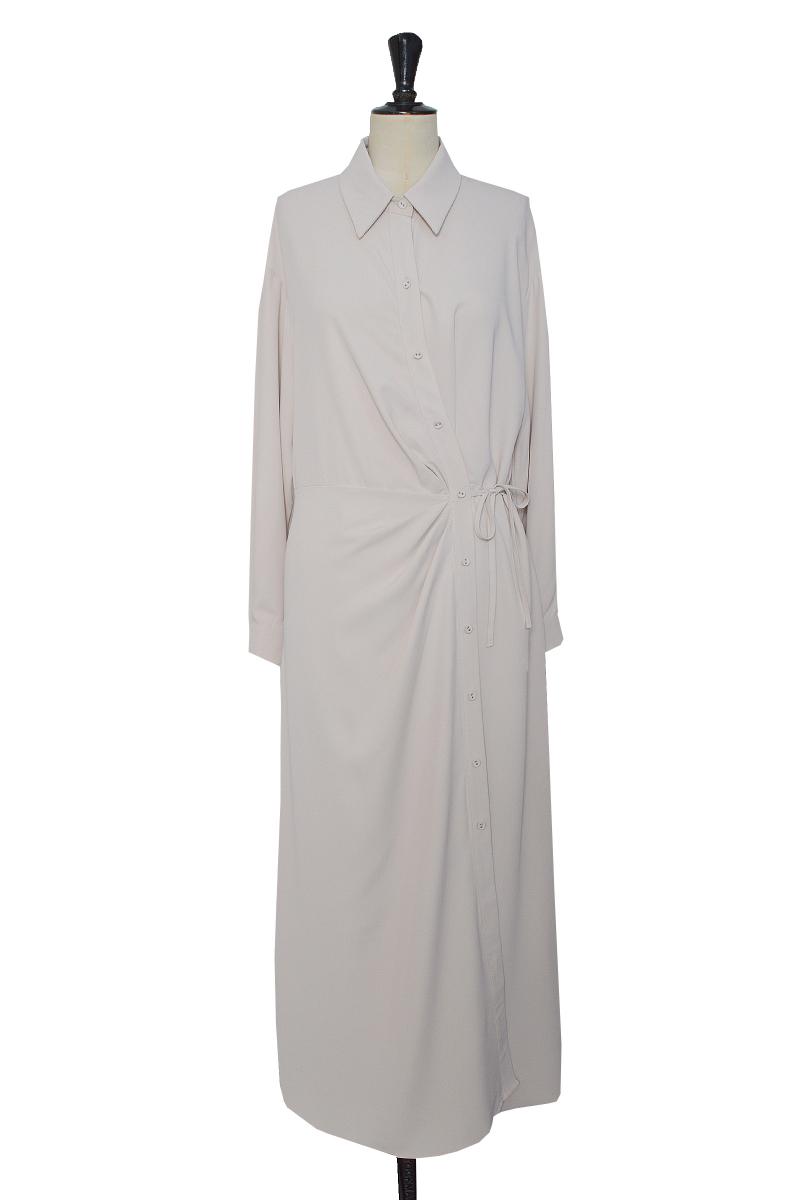 Robe chemise longue à taille froncée et nouage latéral élégant