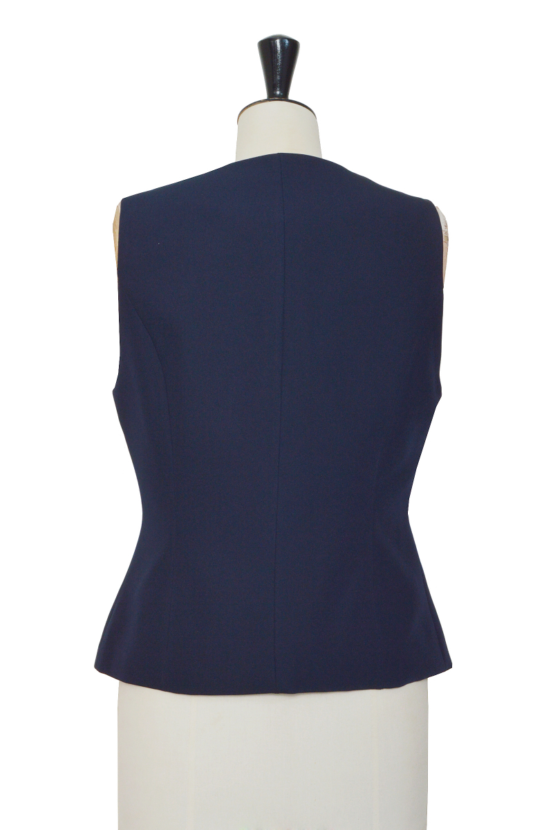 Ce gilet sans manches allie modernité et élégance avec sa coupe ajustée et ses boutons dorés en forme de coquillage qui attirent le regard. La structure près du corps met en valeur la silhouette tout en restant confortable. À porter seul pour un look affirmé ou superposé sur une chemise ou un sous-pull pour une allure sophistiquée.