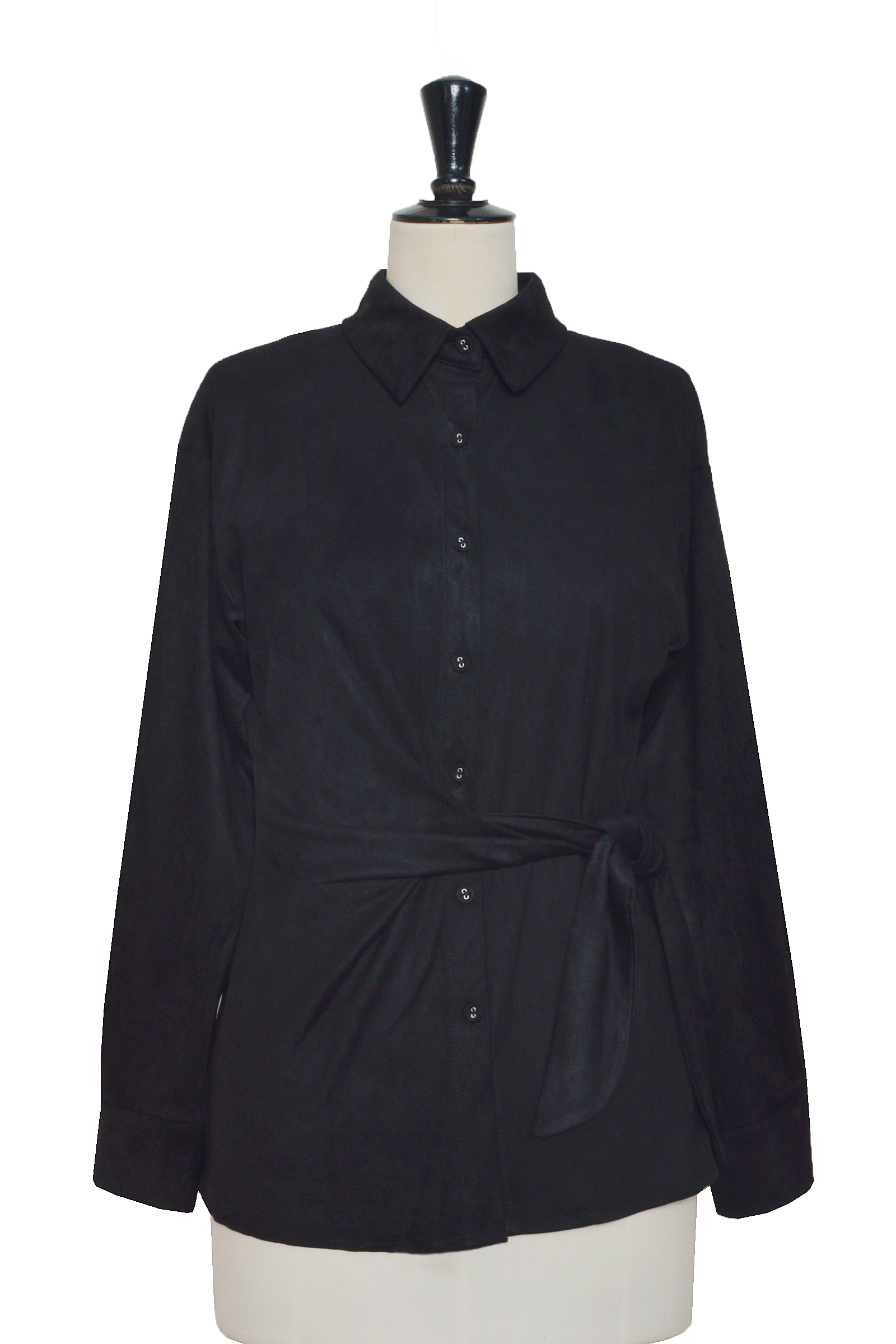 Chemise en suédine ceinturée à manches longues et boutonnage devant