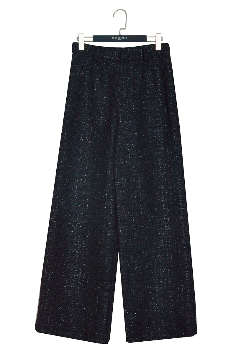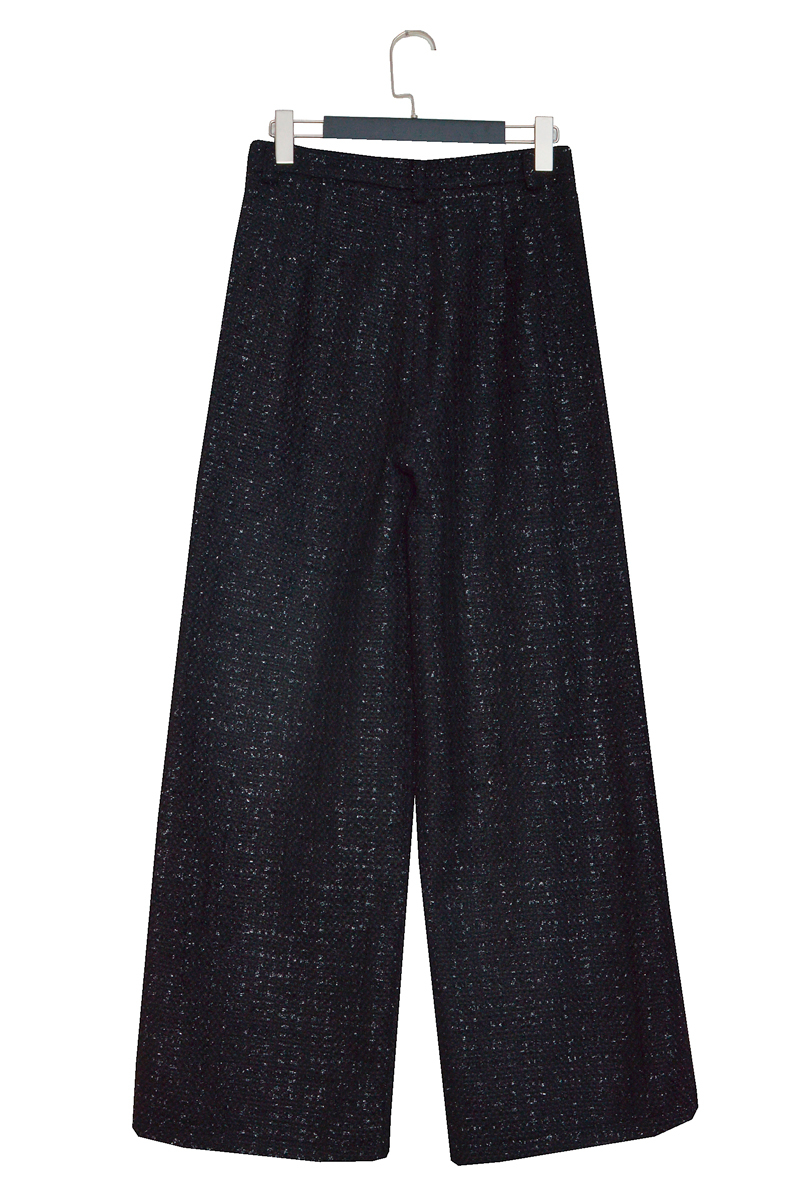 Ce pantalon à la coupe large est réalisé dans un tweed texturé marine légèrement scintillant. Sa silhouette ample et structurée allonge la jambe et apporte une élégance naturelle à toutes vos tenues. Il se porte facilement avec une blouse fluide ou une veste coordonnée pour un total look chic.