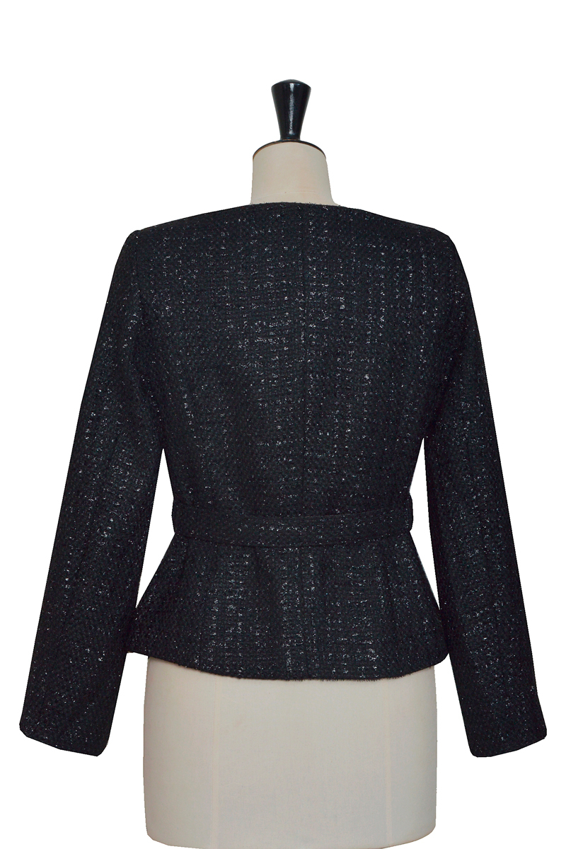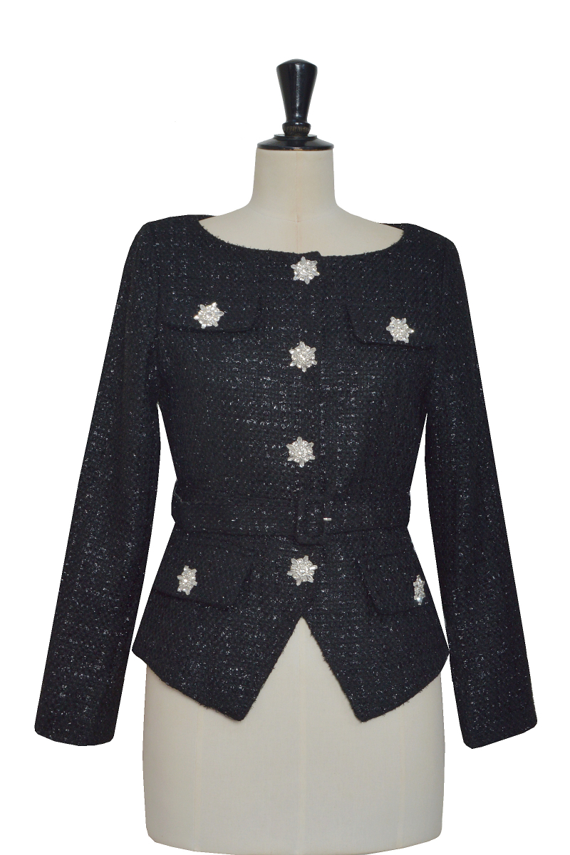 Veste en tweed ceinturée à boutons bijoux et poches à rabat