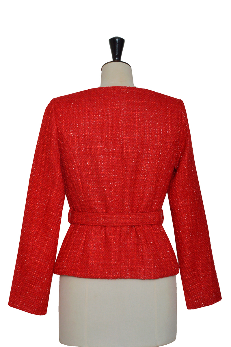 Cette veste en tweed structurée revisite les codes classiques avec élégance. Sa coupe cintrée est sublimée par une ceinture assortie qui marque la taille. Les boutons bijoux effet cristal ajoutent une touche lumineuse et précieuse à la silhouette. Un col carré raffiné et des poches à rabat complètent ce modèle habillé, idéal pour vos looks chics et féminins.