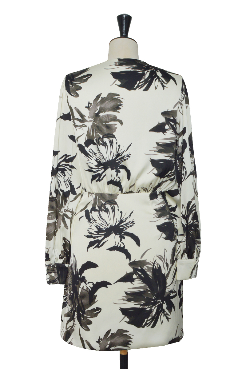 Cette robe portefeuille élégante séduit par son tissu fluide à l’imprimé floral audacieux. Son décolleté en V croisé met en valeur la silhouette, tandis que la ceinture nouée à la taille apporte structure et féminité. Les manches longues légèrement bouffantes se terminent par des poignets boutonnés, pour une finition raffinée. Une pièce versatile, parfaite pour un look chic de jour comme de nuit.